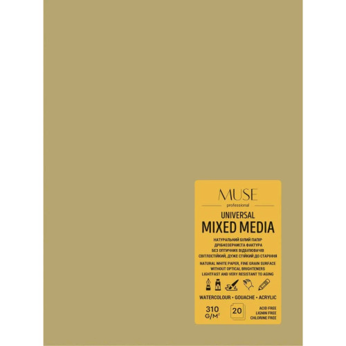 Склейка для змішаних технік, 180x240, 20арк., 310г/м2, MUSE, PB-GB-020-096