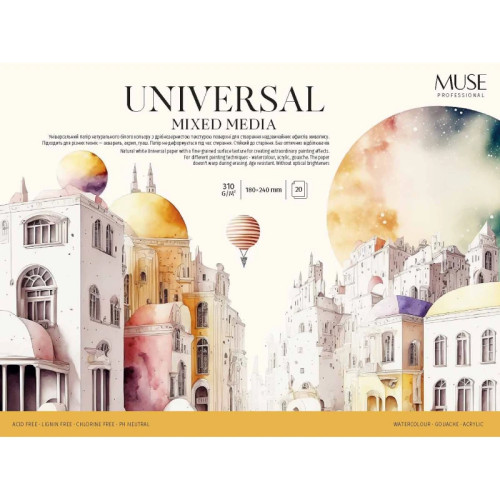 Склейка для змішаних технік, 180x240, 20арк., 310г/м2, MUSE, PB-GB-020-105