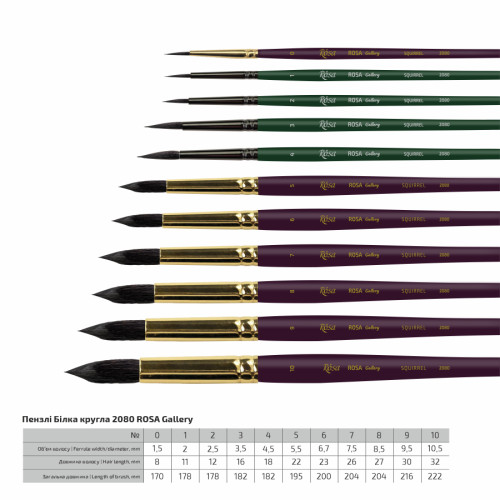Пензлі з натурального волосу білки ROSA Gallery - м'які, пружні на стильній зручній короткій дерев’яній ручці.