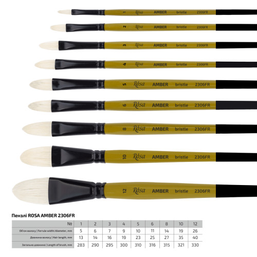 Щетина овальна, AMBER 2306FR, №5, д.р. пензель ROSA, 2306FR05