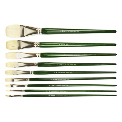 Щетина плоска серії Classic 2402F KOLOS призначена для нанесення широких рівних мазків: ними добре працювати на крупних ділянках полотна.