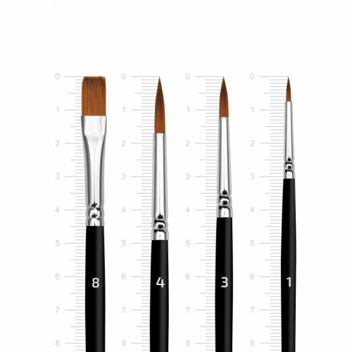 Круглі пензлі з гострим кінчиком дозволяють не думати про зміну інструменту — легкий дотик дає найтоншу лінію для контурів, а сильніший натиск — соковитий мазок.