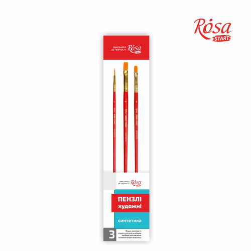 Набір пензлів 5, синтетика, 3шт, плоска (№ 8,10), кругла (№2), к.р., ROSA START, 184145