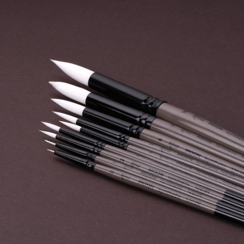 Серія MOON – пензлі з еластичного м'якого синтетичного білого волосу на короткій ручці.
