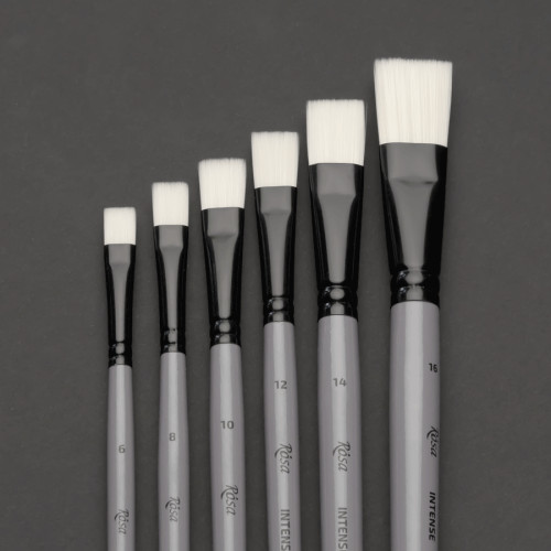Серія INTENSE – пензлі із жорстким синтетичним волосом білого кольору - гарна альтернатива щетині для густих фарб та для створення фактурних мазків з характером.