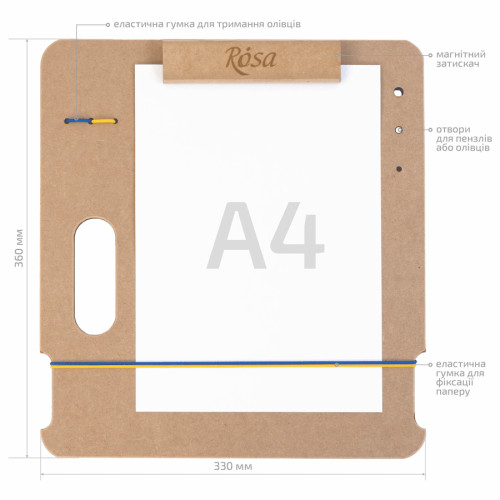 Планшет з магнітним затискачем А4 (33*36см), МДФ, ROSA Studio, GPТ50045794