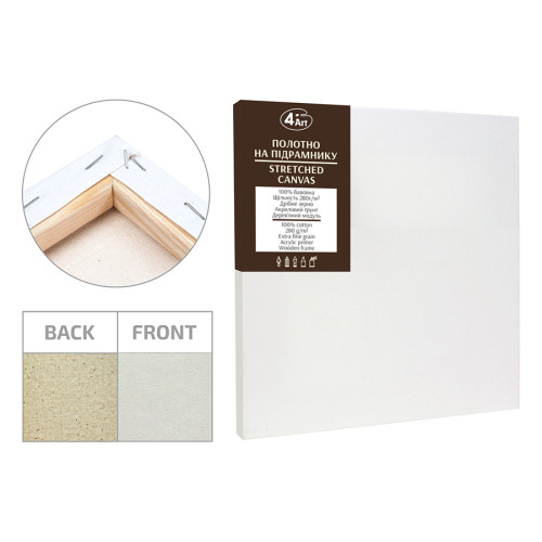 Підрамник, 20*20 см, др. зерно, акрил, бавовна, 280г/м2, 4Art, GPA1892020