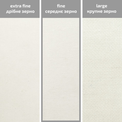 Середньозернисте полотно (335 г/м2) ідеальне для робіт виконаних як з допомогою пензля так і мастихіна.
