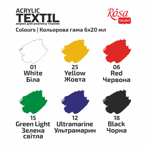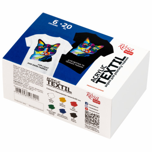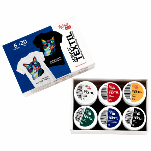 Набір акр.фарб для розпису тканин, 6кол*20мл, ROSA Talent, 134620
