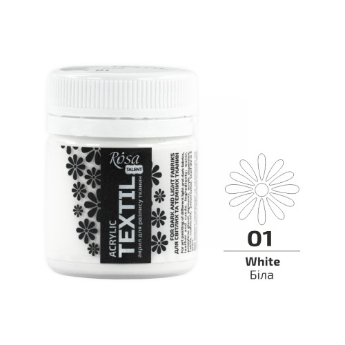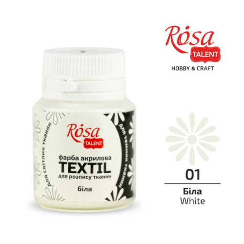 Фарба акрилова для тканин, Біла, 20мл, ROSA Talent, 263401