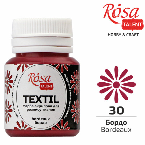 Фарба акрилова для тканин, Бордо, 20мл, ROSA Talent, 263430