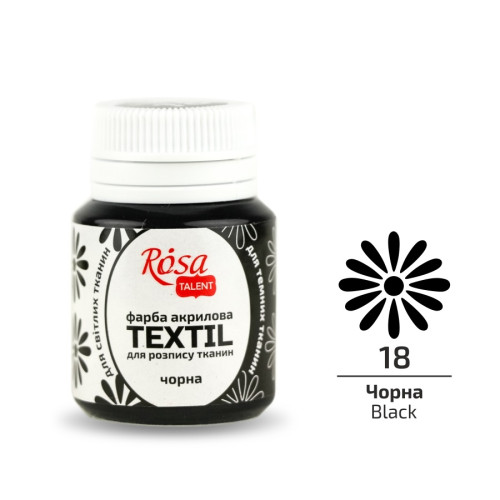 Фарба акрилова для тканин, Чорна, 20мл, ROSA Talent, 263418