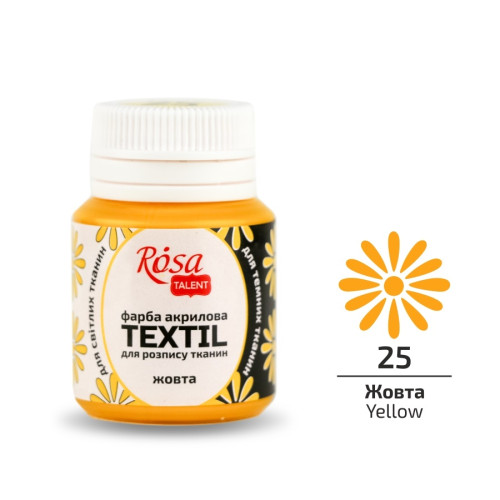 Фарба акрилова для тканин, Жовта, 20мл, ROSA Talent, 263425
